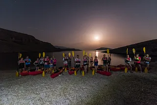 The tour begins from Ručica beach near Metajna village. After the guide introduces the guests to the tour and hands them the equipment, the kayak tour embarks towards Slana beach. The quiet of the night, with only the sound of paddles touching the water, creates a calm and relaxing experience. The glow of the Moon reflecting on the water creates a spectacular scene as you paddle through the night. On Slana beach a short break is planned. The moonlight illuminates the surroundings enough to see the contours of the landscape and enjoy the view of the unique environment. After the break the route continues toward Beriknica beach, where a longer break is planned. Beriknica is one of the most stunning beaches of the island of Pag, which astonishes with its natural formation of three large boulders in the sea, and watching them illuminated by the brilliant moonlight creates an exquisite experience. On the beach every participant receives a refreshing drink, after which follows the return to Ručica beach. Paddling under the light of the full Moon creates the feeling of tranquility and connection to the nature. The reflection of the moonlight is refracted on the waves, creating a magical dance of light and shadow. The water appears to be sparking, which creates an atmosphere you will remember for a long time.