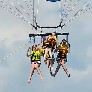Parasailing is an exhilarating activity that's perfect for creating unforgettable memories with friends, family, or your special someone. As you ascend into the sky, the captain will ensure a smooth and safe lift-off, allowing you to marvel at the breathtaking bird's-eye view of the crystal-clear sea and the stunning landscape below.